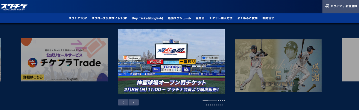 公式以外では、チケットぴあ系の特別チケット販売サイト、CNプレイガイド、ローチケでも東京ヤクルトスワローズの取り扱いがあります。